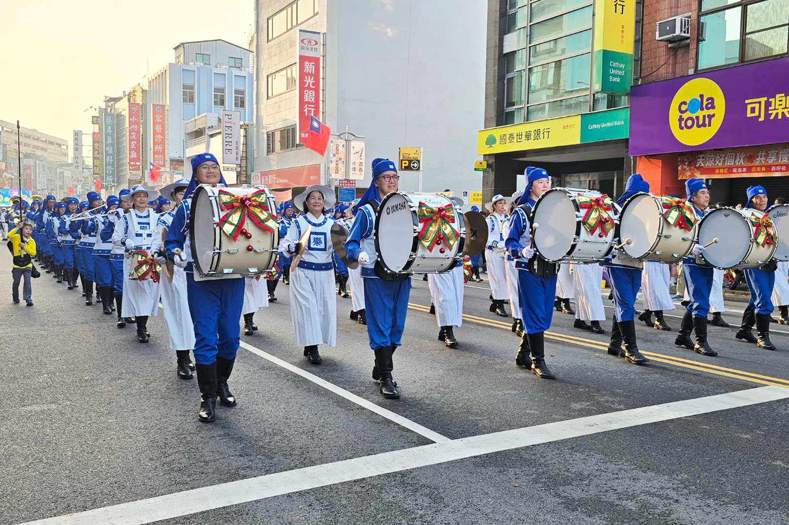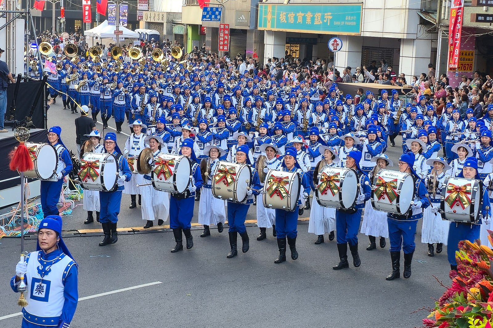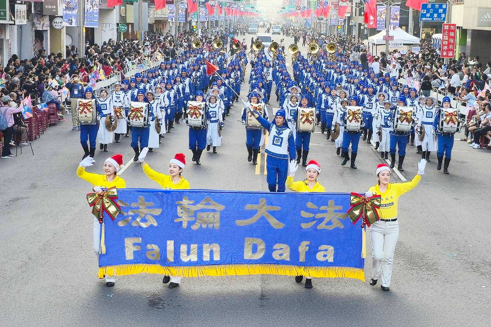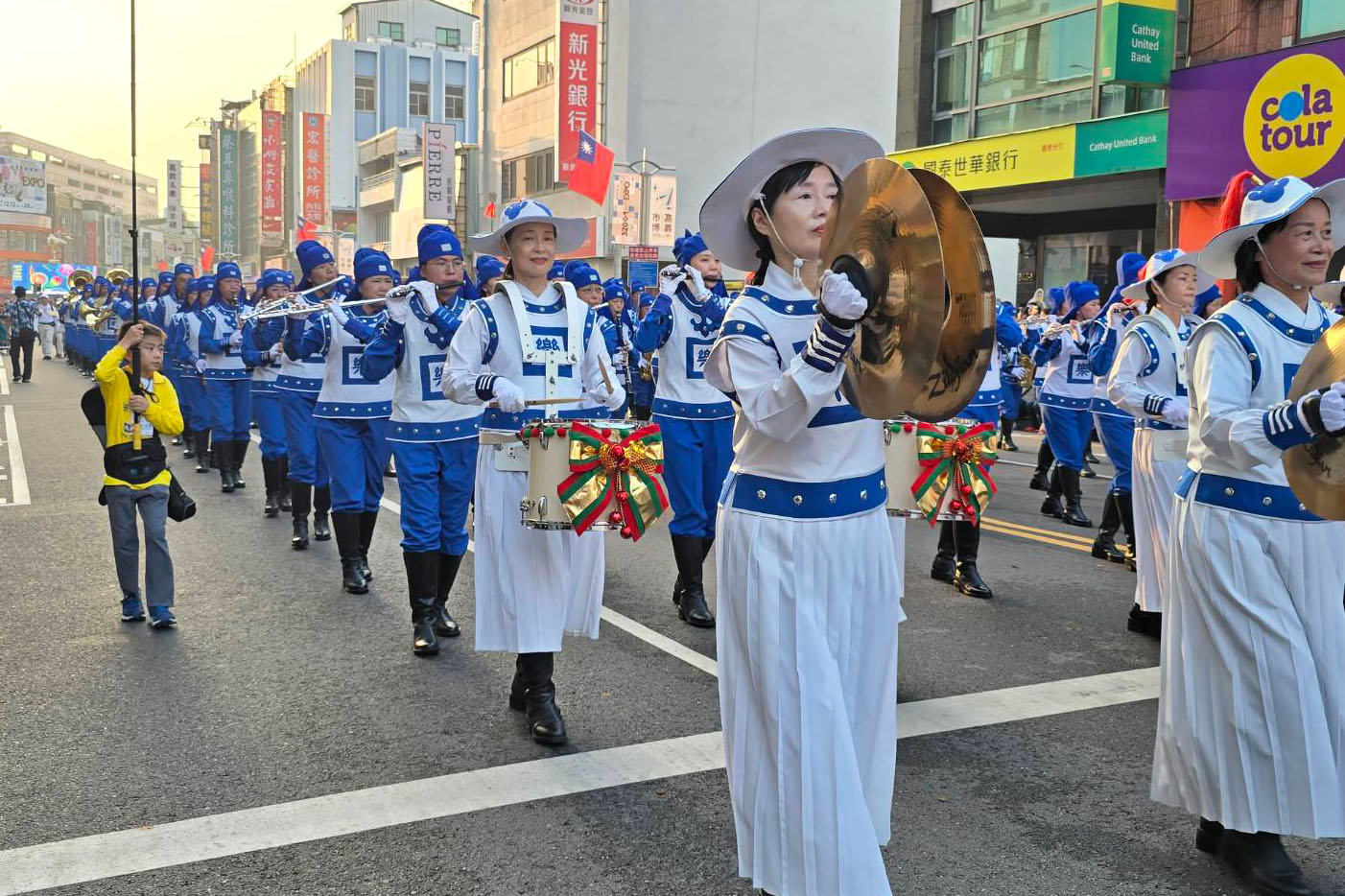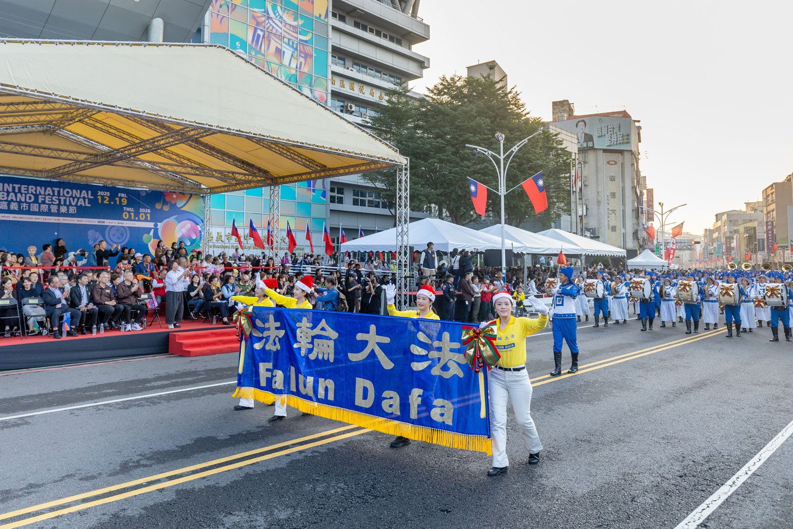 二零二五年十二月二十日週六,由法輪功成員組成的法輪大法天國樂團在第三十三屆「嘉義市國際管樂節」踩街活動中盛大登場,天國樂團已連續十餘年參與管樂節,今年集結全台200多名團員,再次以震撼人心的樂音,成為街道上最受矚目的焦點。