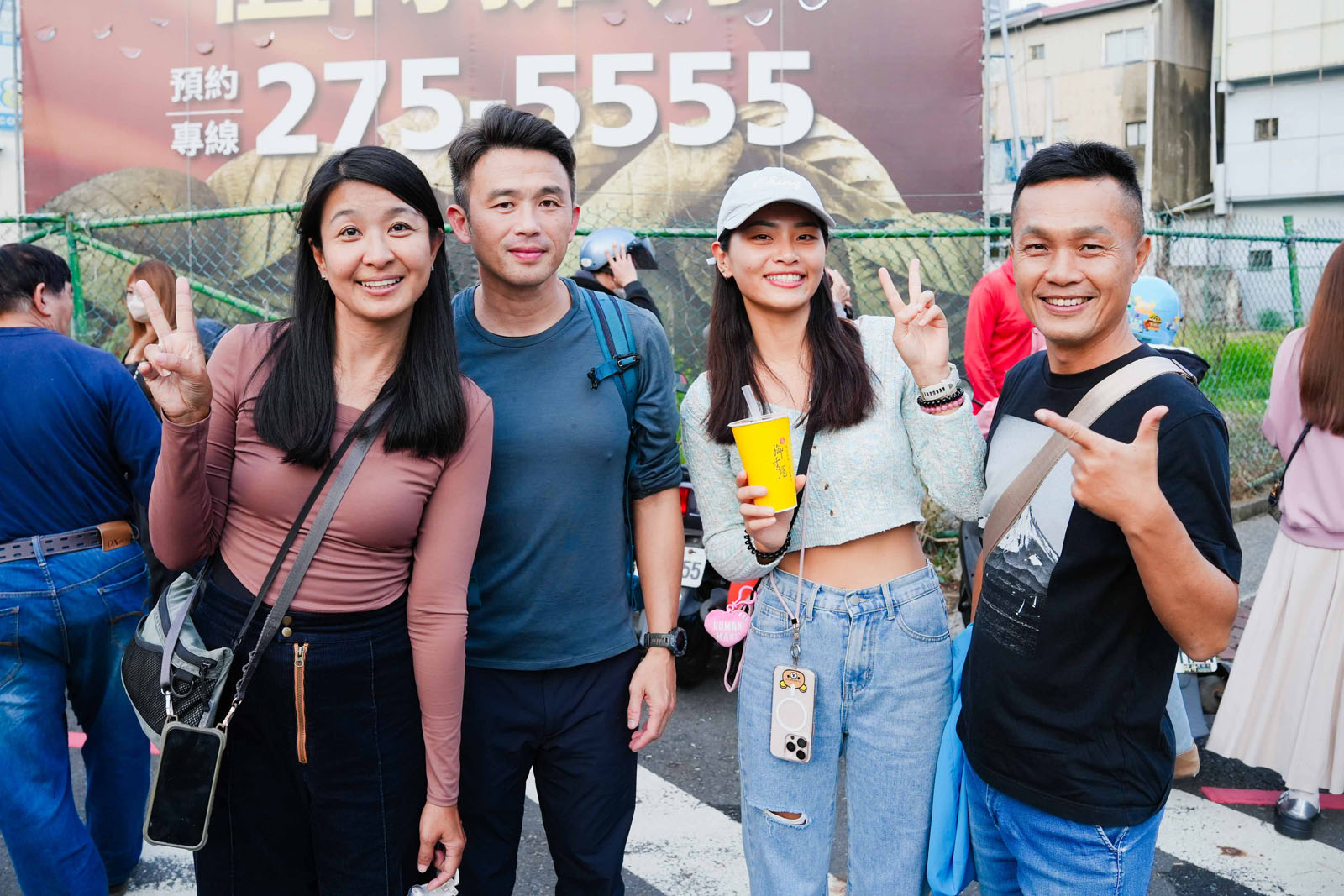 圖12:從北部特地南下的陳先生(右一)、謝小姐(左一)和兩位友人稱讚法輪大法天國樂團。